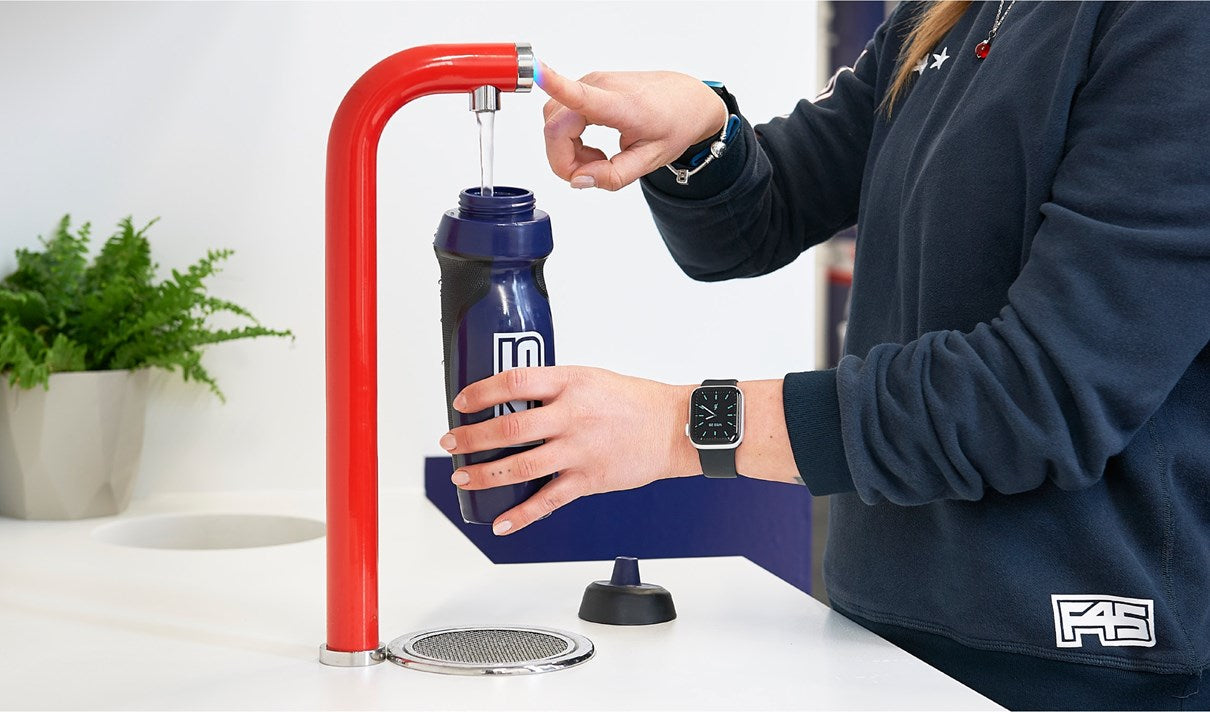 F45 Training (Blackhorse Lane) was looking to install a hydration solution for members. Water, of course, is vital when exercising. But Hanri, the franchise owner, had some more specific requirements. Committed to supporting a refill culture, Hanri wanted to provide pure, fresh water on tap. The hydration system had to be high capacity, energy efficient, and user friendly. It had to be suitable for dispensing just a cupful of water, but also for refilling a bottle. And it had to look great … Oh yes, and it had to play a part in F45’s branding.